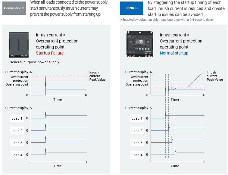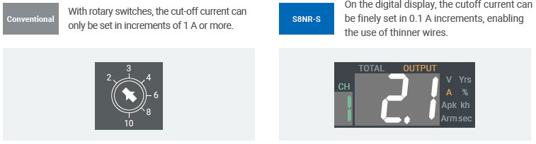 By setting the cutoff current to match the wire gauge, thinner wires can be used. Fine control of the startup sequence further helps prevent on-site issues.